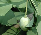 10月11日、愛知県弥富町にクスノキを見に行ったとき、薬師寺の本堂前で休んでいると、頭を丸めた庵主さんがお茶を出してくれた。なんと地元の銘菓付である。秀吉がこのクスノキに舟をつないだというクスノキの話を聞き、「あいちの古木」という本にこのクスノキが紹介されていると言って、その本を持ってきて見せてくれた。また近くに「おみよしの松」という名木があるから見て帰ることを勧められた。帰りに小額のお供えを包んだところ、トウガンのお土産までいただいた。