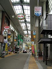 中山道は中ノ町の商店街のアーケードの下(右写真)を北へ進む。アーケードで天気は判らないが、予報では今日は一日曇りで、雨はなさそうであった。歩きも三日目で時間も遅いから、次の宿の守山宿までのつもりである。右側の路傍に中山道の案内板があった。