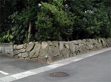 伊砂砂神社の中山道側には三段ほどの石垣が残っている。鎌倉時代の自然石の平積みの石垣だという。(右写真)