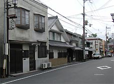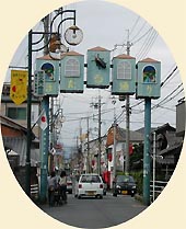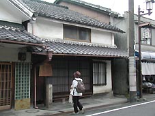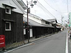 左側の八幡宮前に「稲妻型屋敷割りの道」という案内板があった。左の写真でみてもわずかに一軒づつづれているのが判る。しかし治安維持のためという理由は少し嘘くさい。怪しい人物を気にするならば、町中に隠れる場所を無くするほうが良いと思う。おそらくやってくる旅人に向けて店を出すのに、少し斜交いに構えたほうが都合がよかったのではないか。穿ちすぎか。