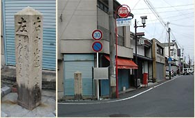 東門院を出てまもなく右折する。その角にかって高札場があり、現在、石標がたっていた。(右写真)