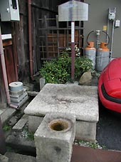 守山宿の中心地区に入って右手に、間口の広い蝋燭屋がある。間口いっぱいに車が駐車されていて見学は遠慮したが、入口に和蝋燭の看板が残っているという。蝋燭屋さんの右側に「井戸跡」(左写真)が残り、案内板が立っていた。