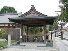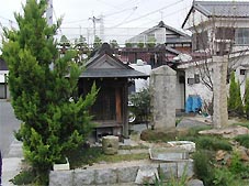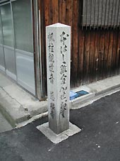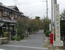 すぐに守山本宿の加宿の役割を果たしていた吉身に入る。古い町並の中で右側に案内石標があった。(左写真)一面に「帆柱観世音 慈願寺」、もう一面に変体仮名で「本はし羅可んせお無」(ほばしらかんぜおん)と読める。