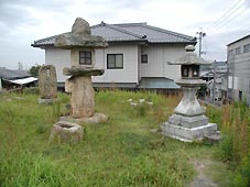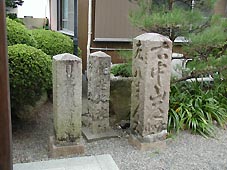JR東海道線を潜って野洲町に入る。10分程歩いた変則の四つ角左側に蓮照寺がある。その山門を入った左側に中山道の道標があった。(右写真)ここには3基の道標がある。一つは「右 中山道 左 八まん道」の道標、二つは「左 錦織寺四十五町」の道標、三つは「従是北淀領」の領界石標である。