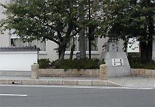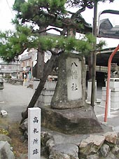 すぐ先の左手に田舎のビジネスホテルが見えてきた。ここで泊まっても良かったなあと話す。みすぼらしくて少し悲しいか。午後4時11分、近江八幡市馬淵町で再度国道8号線に出る。出たすぐ左に八幡神社がある。その前に高札所跡の石碑があった。(左写真)