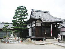 その変則四つ角の右側には浄土宗唯心寺がある。わら屋根の本堂がこんな町中に珍しい。(左写真)