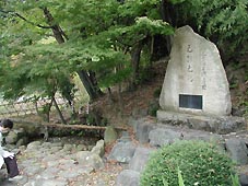午後1時9分、中山道は三ツ坂の集落を通過する。三ツ坂児童集合所というブロック積みの建物に、「中山道三ツ坂このあたり立場」と書かれた板が貼られていた。その向かいに小さな祠と石碑が立っていた。(左写真)そばにいたおばさんが「何とか行者の碑だ」と説明してくれたのだが、後日調べようと思ったが判らなかった。