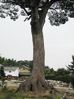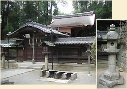 100mほど進んだ左側に鏡神社がある。(右写真)この辺りは古代には天日槍(あめのひぼこ)が新羅から技術集団と共に渡来したといわれ、近くに須恵器を生産した窯跡群もある。この鏡神社の祭神はその天日槍である。