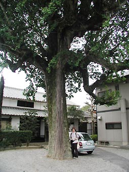 更に10分進んだ左側民家前に、本藍染の案内板があった。民家の庭には大きな壷が並んでいた。(左写真)藍を入れた信楽焼の壷なのであろう。