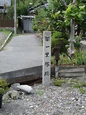 国道8号線から右手に愛知川宿に分かれる不飲橋の交差点手前右側に、ひっそりと一里塚跡の石標が立っていた。(右写真)
