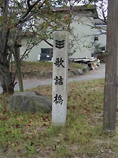 15分ほど歩いて宇曽川に架かる歌詰橋を渡る。川の土手に「歌詰橋」の石標(右写真)と案内板があった。