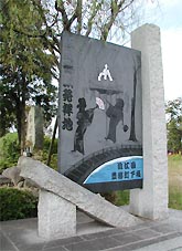 「豊会館」の前には豊郷町石畑の一里塚の石標や五輪塔が移され、また遠く逢坂峠の「車石」が展示されていた。(左写真)