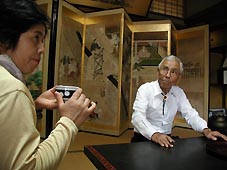 数分歩いて右側に黒板塀の間口が大変広い邸宅があった。「伊藤忠兵衛記念館」である。(左写真)伊藤忠商事、丸紅といった大手総合商社の創始者の初代伊藤忠兵衛の旧邸である。ここにも近江商人の精神が生きていた。邸内に入ったが庭だけ覗いて出て来た。