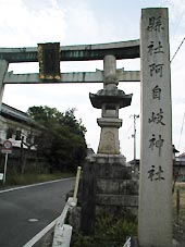 10分ほど北へ進んだ左側に阿自岐神社の鳥居と石燈籠があった。(左写真)阿自岐神社はここから0.8kmほど西に行った所にある。先ほど看板のあった「矢リ木(やりこ)」の伝説はこの神社に伝わるものである。「安食(あんじき)」という地名は「阿自岐」の神社名と同じ語源から出ているものであろう。