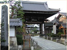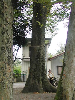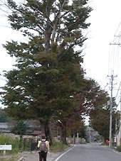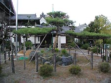 すぐに左側に円照寺がある。(右写真)山門に「明治天皇行在聖跡」と刻まれた石柱が立っていた。(右写真の左端)また境内には枝を両側に広げた松の幼木があった。(左下写真)根元には「止鑾松」と刻まれた石標があった。