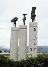 “江州音頭発祥地 豊郷町” “多賀大社一の鳥居と高宮布 高宮宿” |