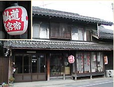 多賀大社の名前を見て、「高宮」の名前は「多賀宮」から由来するものであろうと思いついた。確証はなかったが、多賀大社への入口として宿場も栄えたのであろうと思う。一の鳥居のすぐ先左側に案内書にも紹介されていた古い提灯屋さんがあった。(左写真)看板代わりに少し大きめの「中仙道 高宮宿」と書かれた提灯が軒下にぶら下げられていた。(左写真の左上方形内)