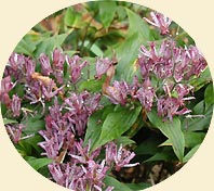 数分歩いた先に、路傍の草むらにホトトギスが満開であった。(右写真)ホトトギスはユリ科の多年草で山地に自生している。秋に、白地に紫色の斑点のある花を咲かせる。ホトトギスの名前はその花の模様が鳥のホトトギスの腹の斑紋に似ているために名付けられた。
