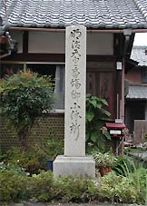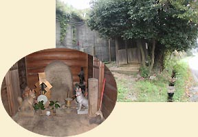 忠太郎地蔵尊のかたわらに五輪塔が一基。(左写真)周りを囲んだ玉垣の一本一本には「番場史跡顕彰会」、「長谷川伸」、「島田正吾」、「中村勘三郎」、「市川寿海」、「片岡仁左衛門」、「片岡千ヱ蔵」、「長谷川一夫」、「三門博」、「広沢菊春」の名前が刻まれている。この五輪塔は誰の墓なのであろう。フィクションの番場の忠太郎に墓がある訳がない。地蔵尊は判るがお墓はやり過ぎであろう。しかも有名人が名を列ねている。