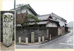 15分ほど北へ進んで彦根市鳥居本町に入る。鳥居本宿である。三叉路の左角に文政十年建立の朝鮮人街道道標があった。(右写真)「右彦根道 左中山道 京いせ」と読める。(右写真の左端)野洲町で中山道と分かれた朝鮮人街道は中山道より4kmほど北西を通り、近江八幡や彦根を経由して鳥居本宿のここで再び中山道に戻る。朝鮮通信使が通った脇往還である。
