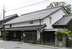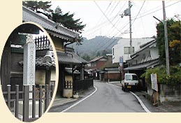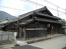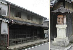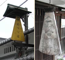 看板のうちの右写真の右側は木綿屋という店に掛かるもので、「本家 合羽所 木綿屋 嘉右衛門」と書かれていた。木綿屋は白壁・虫籠窓・連子格子・竹格子の大きな町屋であった。(左写真)