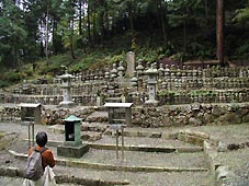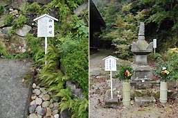 一度境内に戻り右手の山道をたどると、山の斜面にぎっしりと大小の五輪塔並んでいた。(左写真)北条仲時公並びに四百三十余名の墓とされる墓石群である。その数432基。数えたわけではないが、そばの案内板による。
