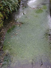 清流、地蔵川には清流にしか育たない二種類の生物が生息している。一つはバイカモ(梅花藻)という植物(左写真)で、今一つはバイカモの中に生息するハリヨという魚である。