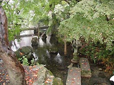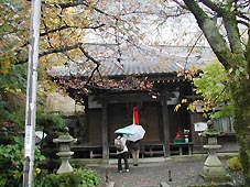 雨はやむ様子を見せない。一組の家族が車で来て地蔵堂に参り、水辺に下りていく。それを機に「居醒の清水」を後にした。向いのお寺は案内書にもあった門に鐘が吊るされているお寺であった。(左写真)お寺の名前は緑苔寺という。