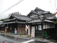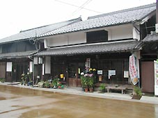 正午、左側に屋根が幾重にも重なった民家を改造した「柏原宿歴史館」があった。(右写真)大正6年建築の旧松浦久一郎邸を改築したものだという。雨宿りを兼ね、300円の入館料を払って入った。館内では江戸時代の柏原宿の史料を保存展示して紹介している。