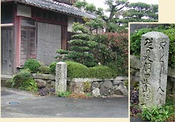 右側に例によって、「明治天皇御駐輦所」の石柱があった。立派な門の屋敷はもと醒井宿役人を勤めた江龍家の屋敷である。(左写真)明治天皇の北陸東海巡幸で、明治十一年十月二十二日に小休止されたという。