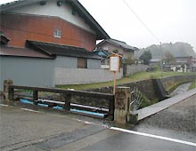 やがて街道は市場川を渡る。この橋は吉村公三郎監督縁の橋として看板が出ていた。(右写真)これは柏原宿歴史館の企画展に合わせた臨時の看板のようであった。