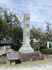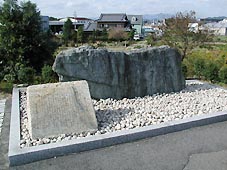 少し進んで、午後0時30分、土手上に行幸巖の碑が見えてきた。(右写真) 今は土手上の一点に過ぎないが、土手が出来る前は小高い岩の上で、木曽川の絶景が見渡せたのであろう。