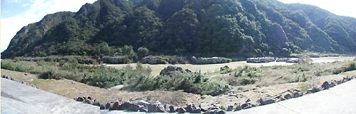 昼食後はパジェロの工場を左に見てから、坂祝町池端で国道から分かれて右折し、もう一度木曽川の土手に出た。ところが川には水が無く荒れ地になっている。実は対岸の一色という集落が島のようになっていて、木曽川は一色のさらに向こうを蛇行して流れている。どういう訳でここに水が流れなくなっているのかはわからない。水の出るときはここも川になってしまいそうである。ということは遊水地として残されているのかも知れない。