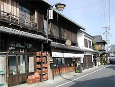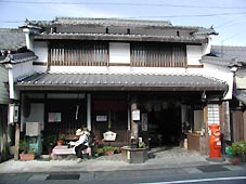脇本陣の斜め向いには、御代桜醸造の工場がある。広場から覗くと白壁と黒板壁のコントラストが美しい建物群が見えた。(左写真) 店は通りにあった。明治20年(1887)に旧本陣から酒造権を譲り受けて営業を始めたという。