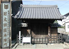 5分歩いて左側に旧太田宿本陣跡がある。現在はその門だけが残っている。(右写真) 脇に「美濃加茂市指定有形文化財 建造物 旧太田宿本陣門」の標柱が建っていた。本陣の福田家は庄屋も兼ねていた。本陣の建物で現存するのはこの西門だけで、文久元年(1861)の皇女和宮の大通行のときに建てられたいう。