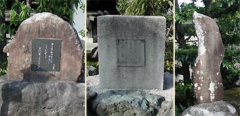 加茂川の橋を渡った先、土手上に兼松嘯風の句碑があった。(右写真) 刻まれた句は残念ながらもう一歩のところで解読出来なかった。