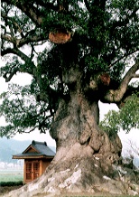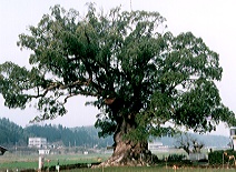 タクシーは北の郊外へ進み国道498号線に出て田舎道を行く。15分ほど行った若木町川古(かわご)の国道から少し入った人家のそばにそばに「川古の大楠」はあった。