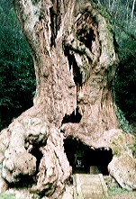 川古の大楠に比べて林の中で居心地がよさそうに見えた。しかし幹の空洞化が進み、そばに立つと危うく感じる。空洞の中に石段が通じて小さな祠があった。