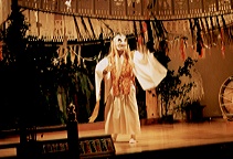 高千穂神社本殿右手には神楽殿があり、毎夜観光用に「高千穂の夜神楽」が奉納されている。夜、再び高千穂神社を訪れた。ライトに巨木のシルエットが浮かぶ境内に、三々五々神楽殿へ向かう観光客がみられる。100人ほどの観光客の前で約1時間、夜神楽のダイジェストが奉納された。天の岩戸神話を神楽舞にしたものの一部分である。本物は冬場に夜を徹して奉納されるものだという。