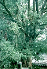 目通りの幹周囲は目立って太いものではないが、根元に向けてぐっと太くなっていた。狭い境内に30mの樹高は随分高い。