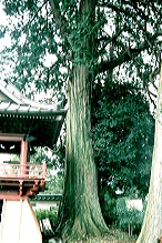 顕本寺の境内にはもう一本スギとヒノキを寄せ植えした、二本合わせて目通り幹周囲6.2mの巨樹がある。