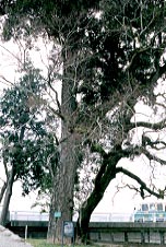九州自動車道を人吉インターで下り、南へ人吉市街に入り、球磨川を渡った左手に人吉城跡公園がある。公園の入口の河岸にイチイガシの巨木が立っている。