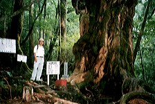 屋久島へ行って『縄文杉』に逢いたいという思いがようやく叶えられた。以前から屋久島へ行きたがっていた会社の先輩と、大阪空港から鹿児島空港で乗り継いで屋久島空港に着く。屋久島は想像したより遙かに大きな島であった。気温29度、海風があり心地良い。さっそくレンタカーを借りて『屋久杉ランド』に向かう。