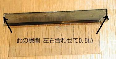 本刃の収まる溝は刃を調整します。刃の収まる部分の巾は刃の先端側は,巾ぴったりか0.5ミリぐらいの余裕にします。刃の入り口の部分は,1〜1.5ミリ位の余裕を持たせます。これは左右の刃の出具合を調整するためです。