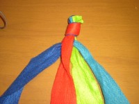 1 まず先端を揃えて4本一緒に結びます。 |