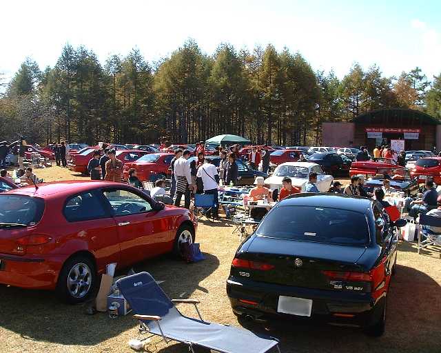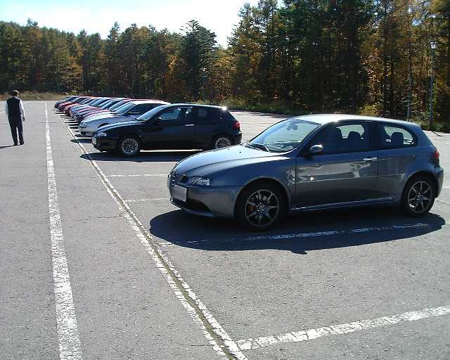 | 女神湖駐車場に集まったアルファな面々。 いつもの和やかな風景です(^^) |