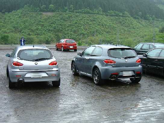 大雨のめいほうスキー場で総勢500台?のラテンカーが集合しました。 ラテンカスタマーサービスさん主催の大規模ミーティングにGTAで参加しました。 生憎の雨天ながら、各地から数多くのラテンカーが参集しました。 緑の萌える山々をバックに出店も多数、車輌展示やジムカーナと盛りだくさんの内容でした。 平成16年5月16日(日)、岐阜県郡上郡めいほうスキー場にて