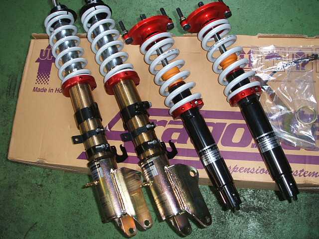 サスペンションはアッソGTAline、アジャス タブルサスペンションキットUでコイルを F10kg、R4kgで特注しました。 Fはピロアッパーです。 |