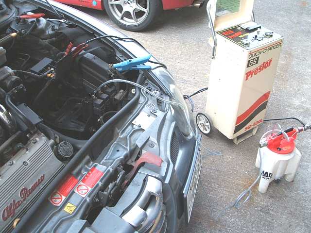 ハイパーチップECUチューンを実施。 147GTAでは初だそうです。、 制御データを一旦吸い上げ、ドイツに送信、 変更データを約1時間後受信して、ROMを 書き換えます。公称22Psのアップです。 |