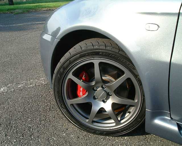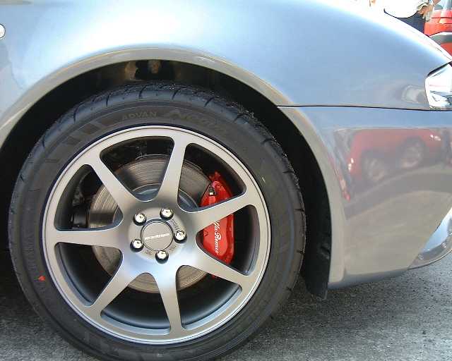 フロントはピロでダイレクト感が増しました。 車高はほんの少し落ちたくらいです。 2ノッチで乗ってますが、街乗りだとちょっと こつこつします。パッドはフェロードです。 |